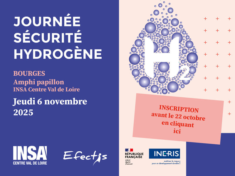 L'INSA Centre Val de Loire, Efectis et l’INERIS organisent la Journée Sécurité Hydrogène qui se tiendra sur le campus de Bourges, le jeudi 6 novembre 2025.